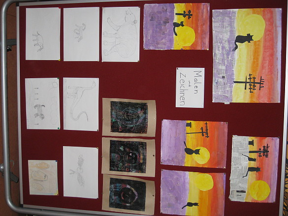 Am Mittwoch, 27. Januar war es wieder soweit, die Präsentation der Ateliers. Alle Kinder der 2., 3. und 4. Klassen haben sich über 3 Monate in jahrgangs-gemischten Gruppen immer am Mittwoch im 2. Block getroffen, um an ihrem gewählten Thema zu arbeiten. Die Vielzahl der Ateliers war wieder grandios, so gab es Angebote zum Kochen und Backen, Sport und Bewegung, Forschen und Experimentieren, Basteln und Malen, Theater, Trommeln, Herstellen von Kosmetik, Tanzen, Werken, Textiles Gestalten, Phantasiereisen und vieles mehr. Während der Präsentation konnten von Eltern, Kindern und MitarbeiterInnen die Ergebnisse bestaunt werden. In der Kinderversammlung zeigte die Gruppe "Ringen und Raufen", was sie gelernt haben. Ein kurdischer Tanz und ein Spiel der Bewegungsgruppe wurden dargeboten Zum Abschluss wurde gemeinsam das Schullied gesunge, bevor es zur Ausstellung und den Mitmachangeboten ging. Im Sockel und in der Halle gab es Mitmachangebote der Sport- und Bewegungsgruppen,im Theaterraum "Tanz und Bewegung". In der Afrikahalle konnten an Ausstellungstischen, Stellwänden und Plakaten die Ergebnisse der Atelierarbeit bewundert, sowie kleine Experimente bestaunt und Kekse gekostet werden.